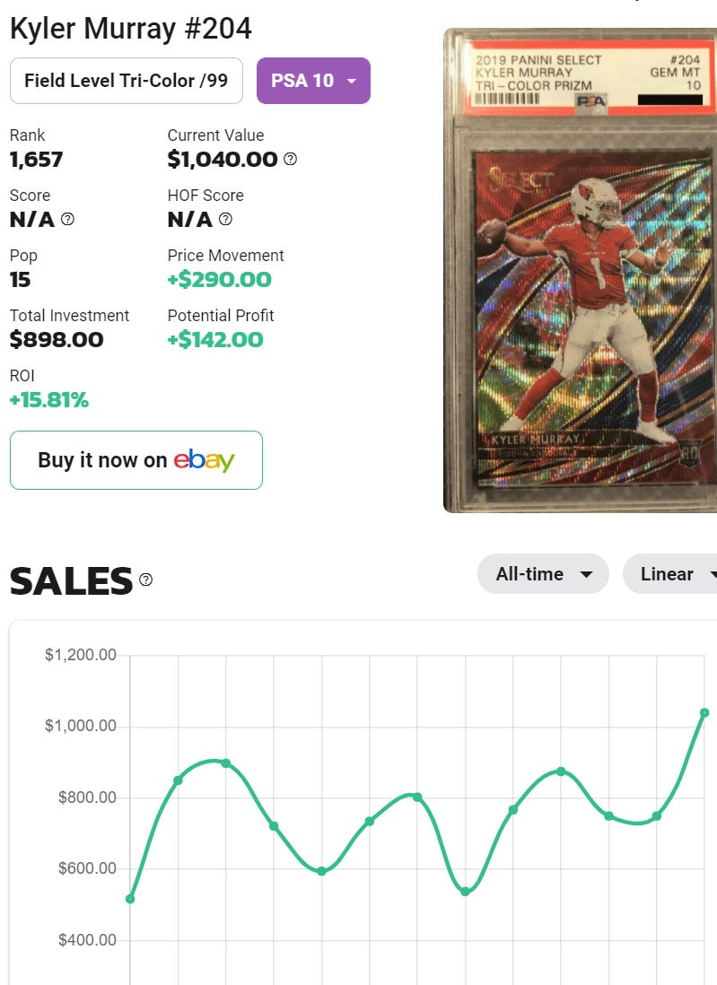 J.J. Watt goes to the Cardinals and my favorite Kyler Murray card that I own (Yes - thatās a disclaimer in my own newsletter) jumps overnight!