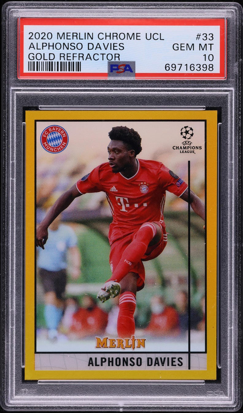 2020 Topps Merlin Chrome UEFA Gold Refractor Alphonso Davies /50 #33 PSA 10 GEM