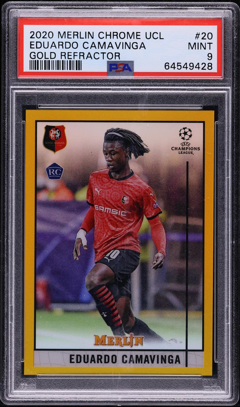 2020 Topps Merlin Chrome UEFA Gold Refractor Eduardo Camavinga RC /50 #20 PSA 9