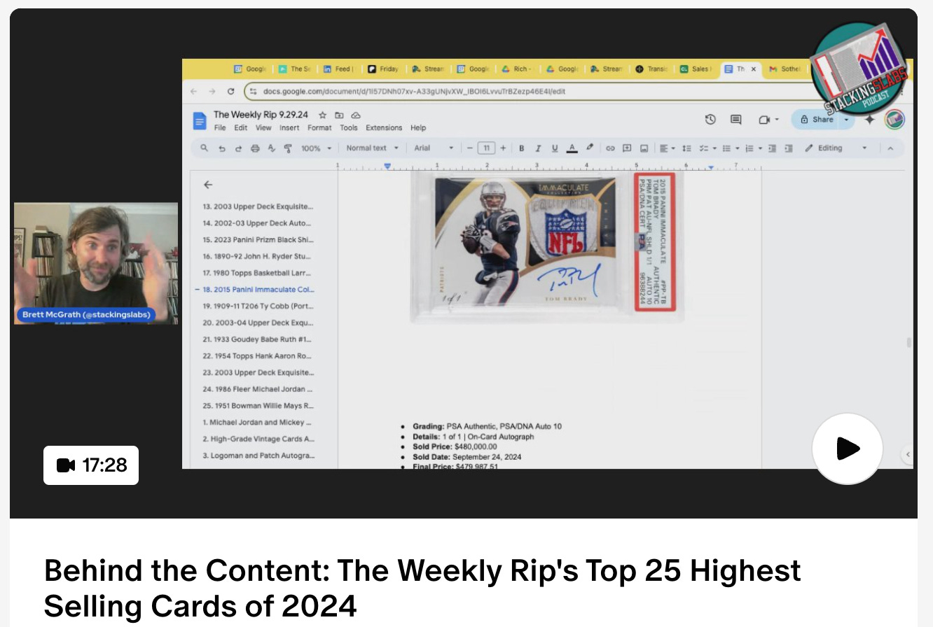 We dropped 4 episodes on the main feed this week and we kicked things off with our conversation with Nat Turner, CEO at Collectors. I really enjoy listening to him discuss initiatives like more in-person interactions at PSA in 2025. Also, it’s fun to hear Nat get into weeds on specific sets that he loves.