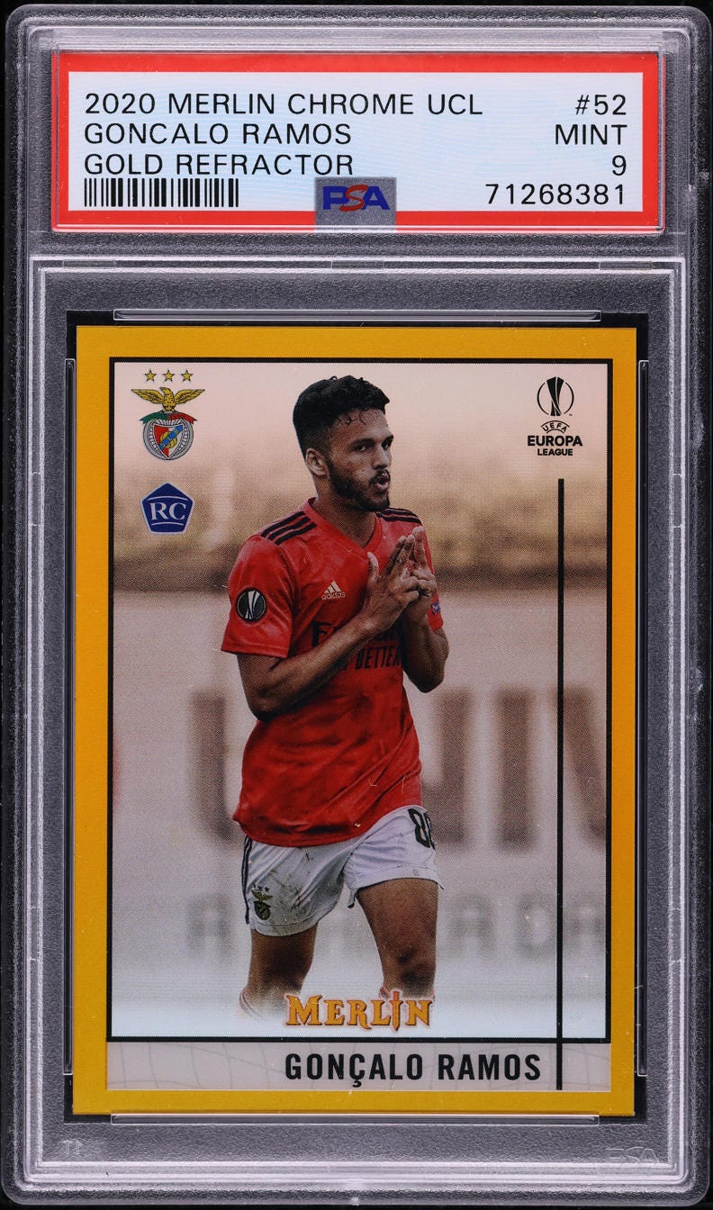 2020 Topps Merlin Chrome UEFA Gold Refractor Goncalo Ramos ROOKIE /50 #52 PSA 9