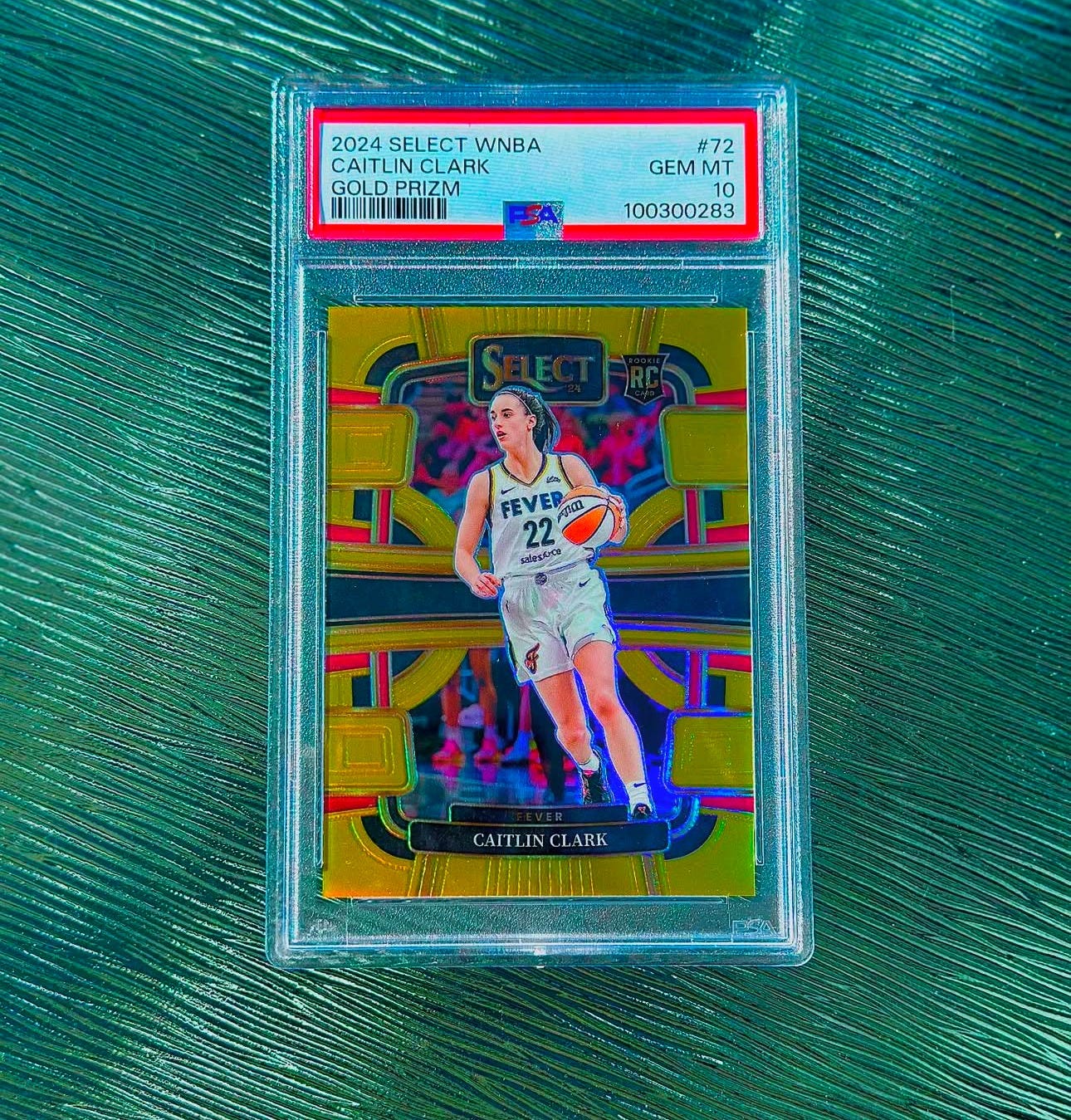 A 2024 Select Gold Caitlin Clark Gold Prizm /10 rookie card. Concourse level. PSA 10. Pop 1.