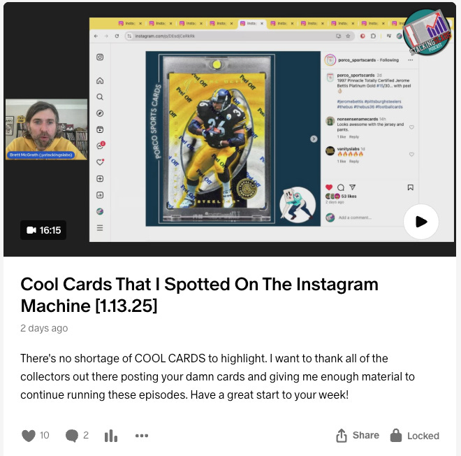 The best way to show your support for Stacking Slabs is to join the damn Patreon community. I’m putting on new content every day in the Patreon. I love doing Cool Cards. It’s my opportunity to scour everything that has been posted on Instagram for the week, pick 10 cards, and talk about them. You can join the Patreon today and start accessing all the new and existing content. I appreciate your support!