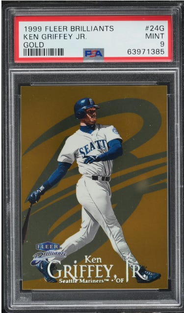 Check out the 1999 Fleer Brilliants Gold Ken Griffey Jr. PSA 9