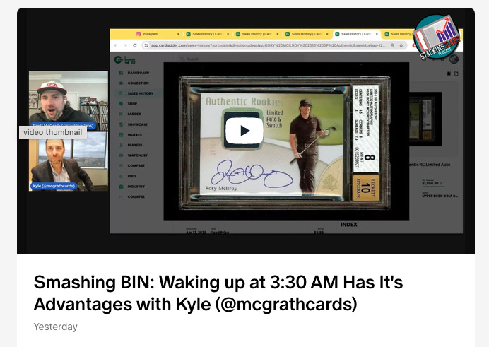 A big thank you to the Card Ladder team for being the official data sponsor of Stacking Slabs. Card Ladder makes me a better creator and collector. If you’re looking to make more data-driven collecting decisions make sure you give the app a spin.