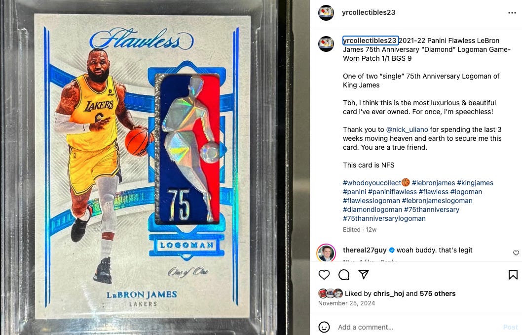 There’s so many incredible collector pages on Instagram. It’s nearly impossible to have awareness around all of them. A week doesn’t go by that I’m not floored by someone’s page that I’ve never seen before. That’s what happened to me recently with @yrcollectibles23. We’re talking rare MJs, PMGs, Credentials, 03 Exquisite, and a lot more. Go smash follow to see some incredible bangers on the regular.