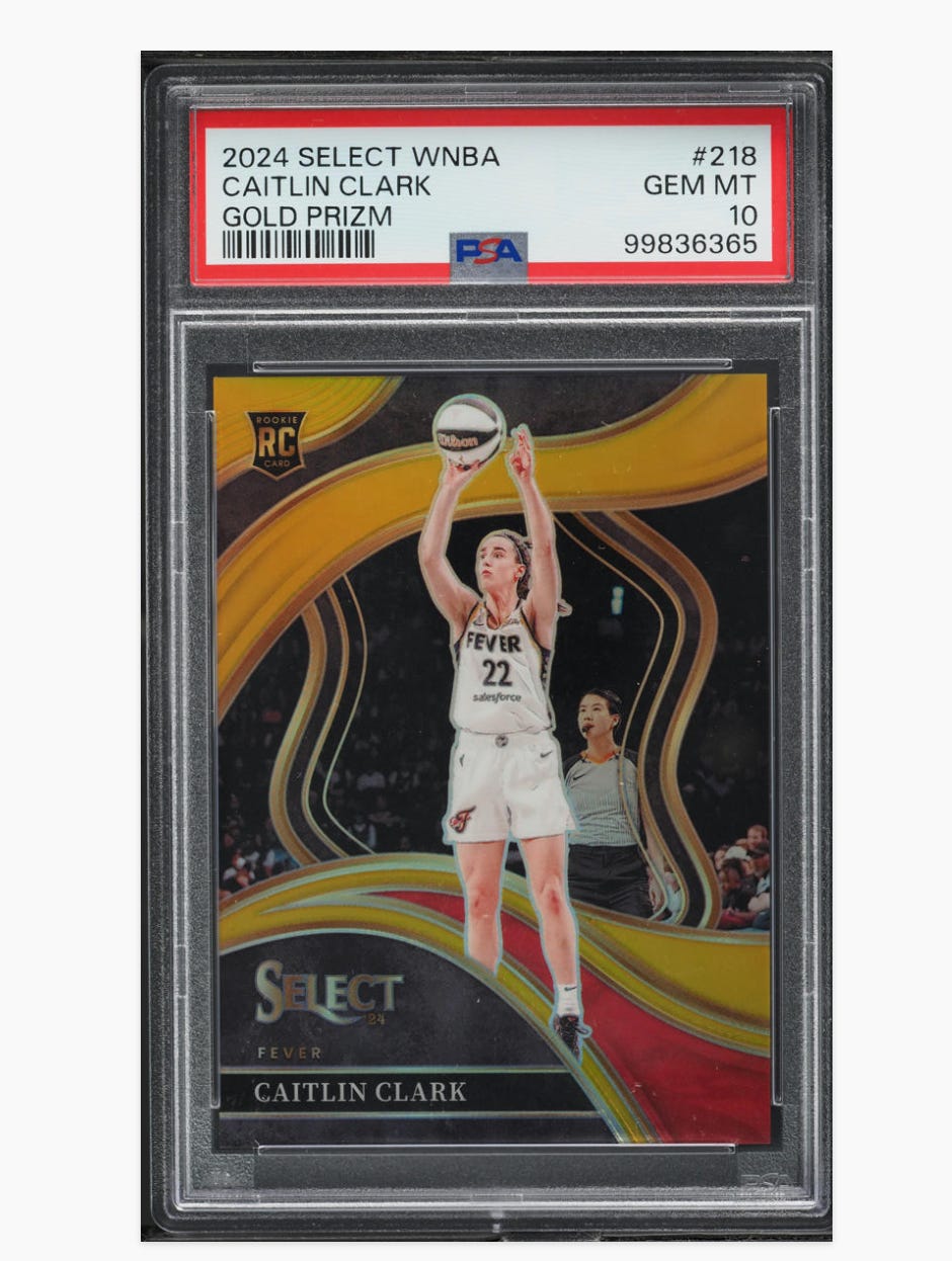 Check out the 2024 Select WNBA Caitlin Clark Gold Prizm /10 PSA 10